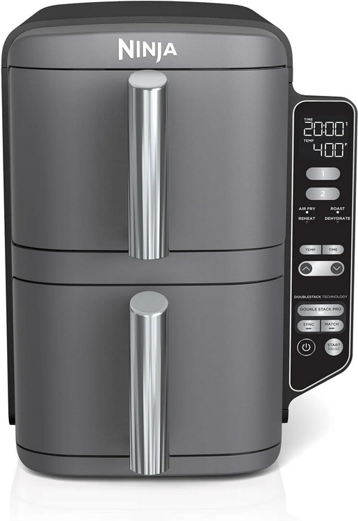 فناوری سرخ کردن در هوای دو طبقه: تنها طراحی روی هم چیده شده نینجا دارای ۲ سبد کنترل مستقل است، بنابراین میتوانید ۴ غذا را به طور همزمان بپزید.