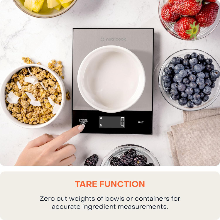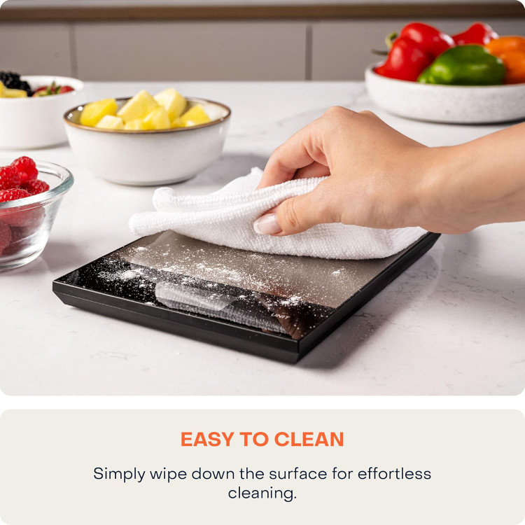 اندازهگیریهای دقیق: وزن دقیق در فواصل ۱ گرمی تا ۵ کیلوگرم/۱۱ پوند؛ تبدیل آسان بین گرم (gr)، اونس (oz)، پوند (lbs) و میلیلیتر (mL)