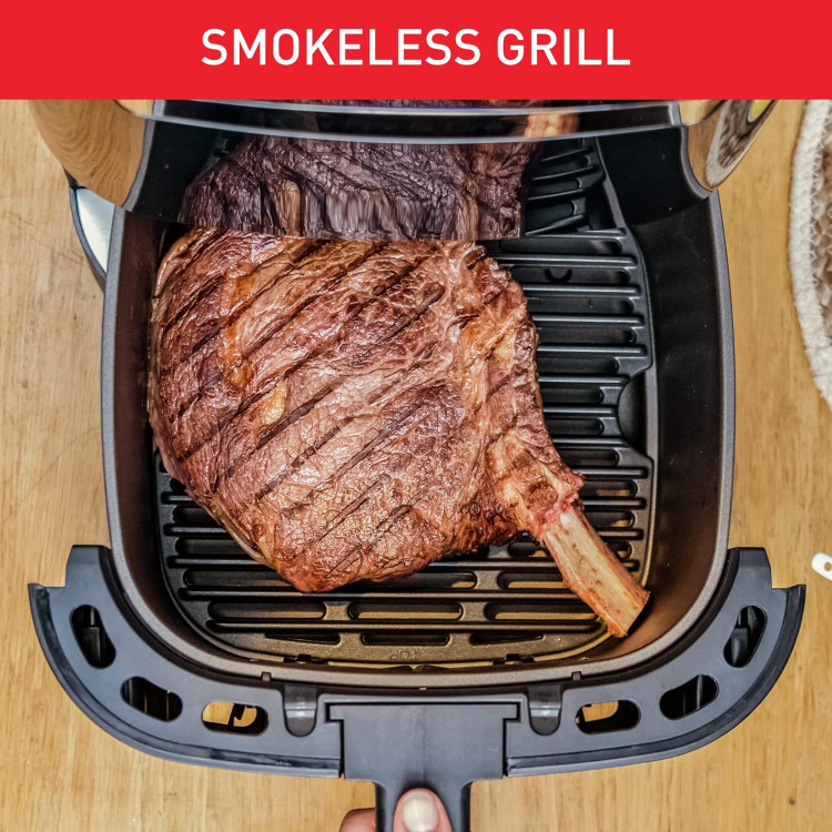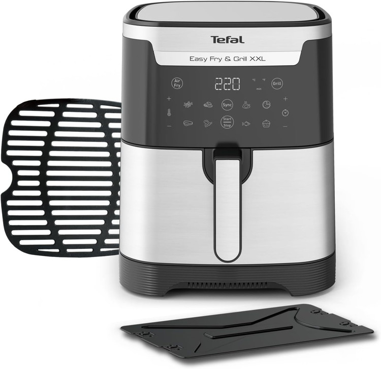 سرخکن و گریل ۲ در ۱ XXL: یک سرخکن ۲ در ۱ با ظرفیت XXL برای پخت سریع و سریع دو غذای مختلف که همزمان آماده هستند. صرفهجویی در زمان: حالت همگامسازی هوشمند با تنظیمات از پیش تعیینشده برای پخت عالی دو غذای مختلف و اطمینان از آماده بودن همزمان آنها.