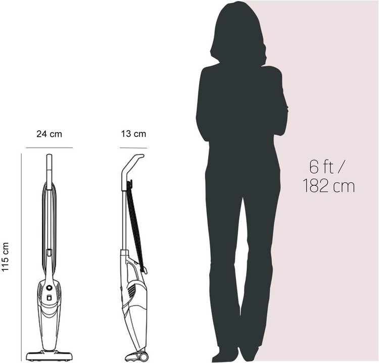 ۳ دستگاه در این جاروبرقی چندمنظوره عصایی به راحتی به ۳ دستگاه مختلف تبدیل میشود. از آن به عنوان جاروبرقی عصایی ایستاده روی فرش و کفهای سخت، به عنوان جاروبرقی دستی روی نقاط بالای کف و به عنوان جاروبرقی پله برای جارو کردن آسانتر پلهها استفاده کنید.