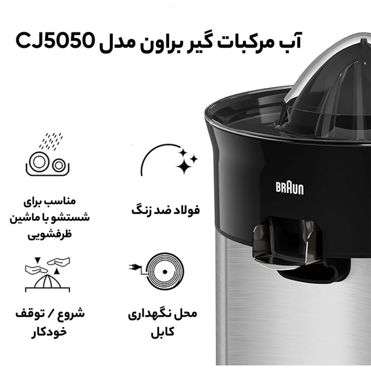 آبمیوهگیری مرکبات براون CJ3050 TributeCollection، 60 وات، قابلیت استفاده مستقیم در لیوان، دهانه ضد چکه، مشکی،