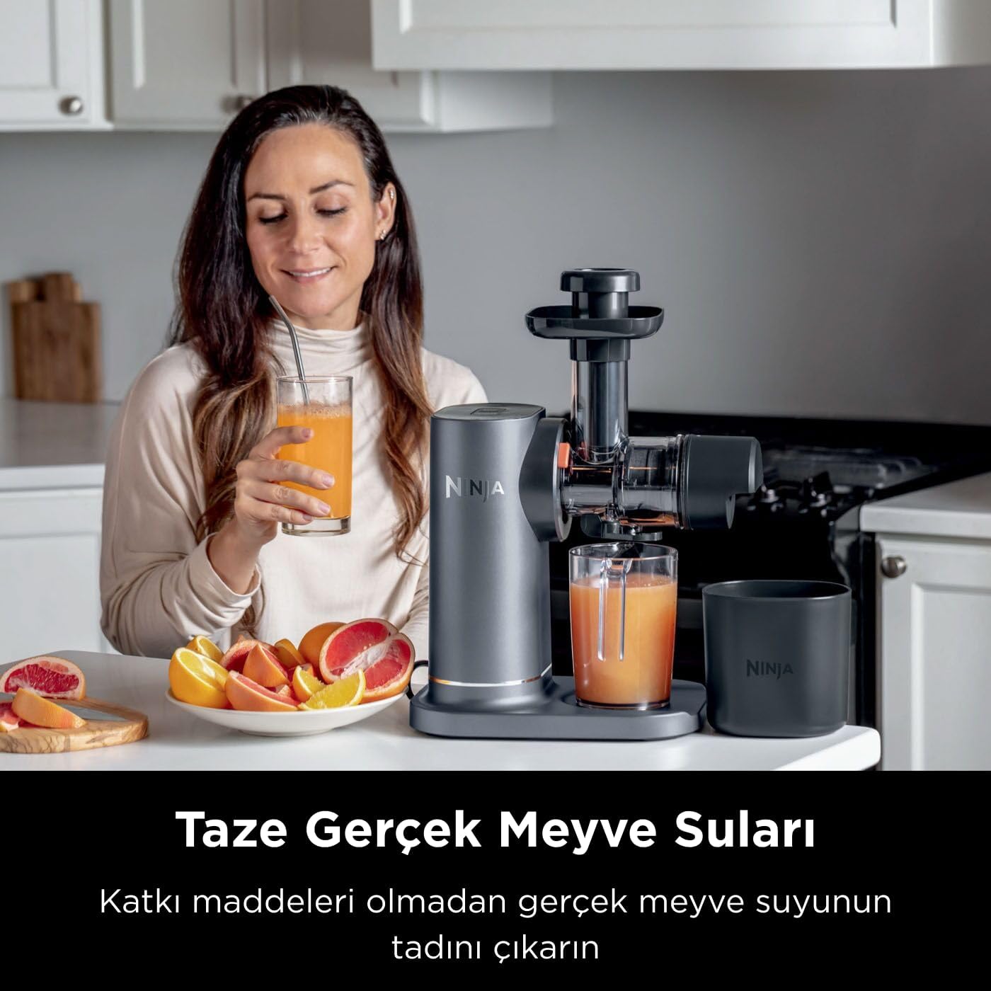 شامل: پایه موتور آبمیوهگیری پرس سرد نینجا، ظرف آبمیوه ۷۰۰ میلیلیتری، ظرف تفاله ۱.۱ لیتری، دستگیره، ۲ فیلتر تفاله، برس تمیزکننده و راهنمای دستور پخت. وزن: ۳.۶ کیلوگرم. رنگ: خاکستری