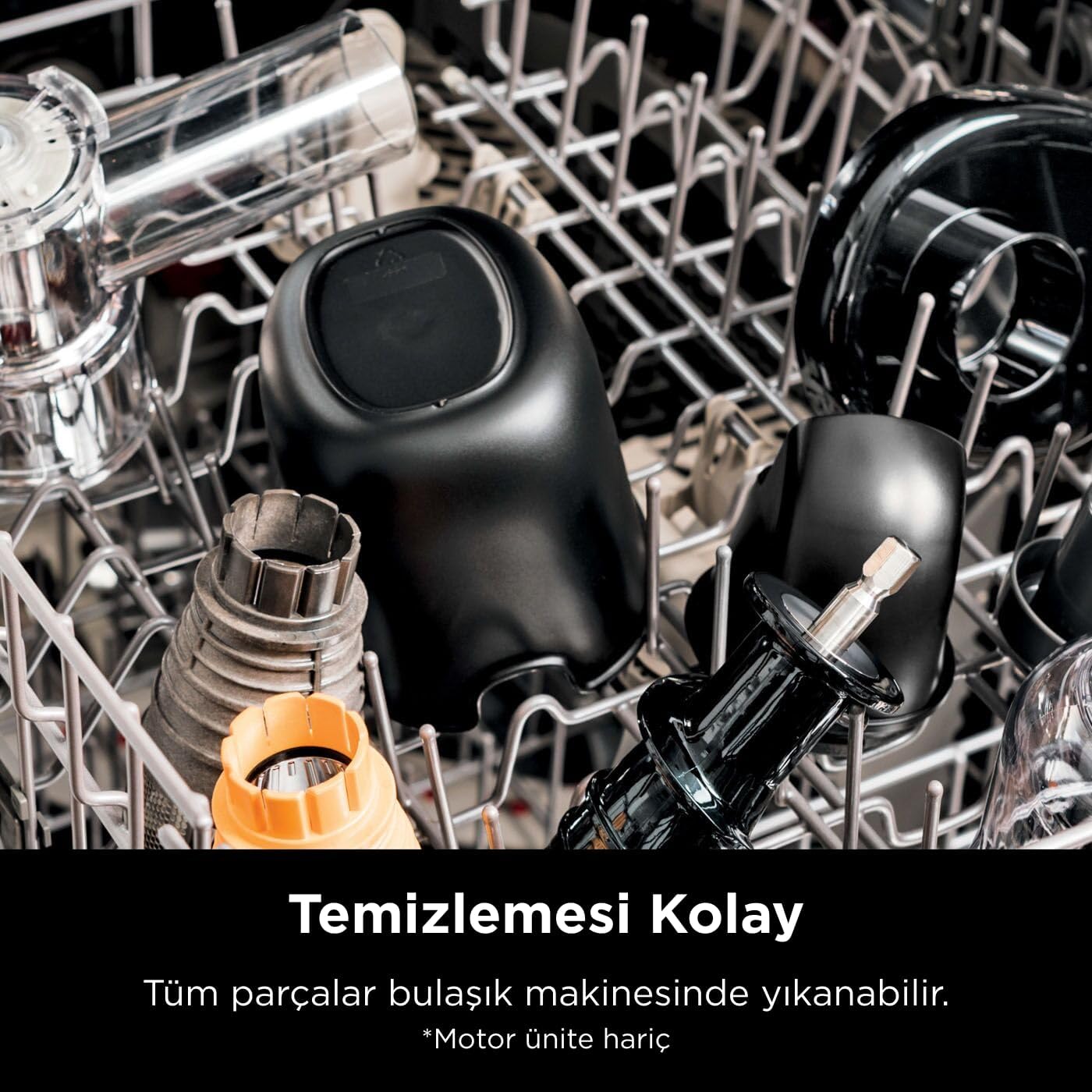 ویژگیهای ویژه آبگیری میوه و سبزیجات، فیلتر ضد گرفتگی، فناوری پرس سرد، قطعات جداشدنی قابل شستشو در ماشین ظرفشویی