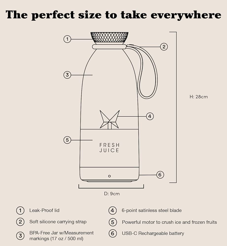 طراحی جمع و جور و قابل حمل: فناوری ثبت اختراع شده ما به شما این امکان را میدهد که Bottle Blender Plus را بدون ترس از کثیفی یا ناراحتی به هر جایی ببرید. طراحی سبک و قابل حمل آن، آن را برای باشگاههای ورزشی، استودیوهای یوگا، پیکنیک و موارد دیگر ایدهآل میکند.
